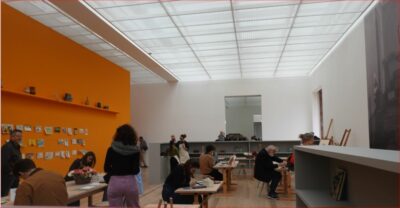 Dans cet esprit, à la suite du parcours d’exposition, les visiteurs·ses ont l’occasion de s’essayer eux-mêmes à la technique de l’aquarelle pratiquée par Cezanne avec tant de virtuosité. L’aménagement d’un atelier au