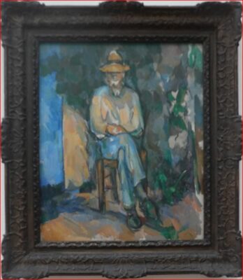 d’autre part les Joueurs de cartes du Musée d’Orsay à Paris, qui sont tout aussi légendaires. Sont également exposées 14 natures mortes de fruits du peintre, très appréciées, ainsi que huit portraits et autoportraits remarquables. Par ailleurs, La pierre à moudre au parc du Château Noir